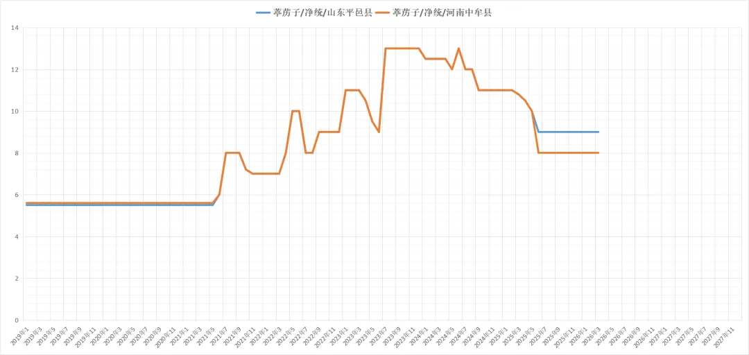 河南省开封市尉氏县葶苈子延续年前价格,目前整体走动一般,目前产地统货价格在6.5-7元,净货售价在8.5元左右。