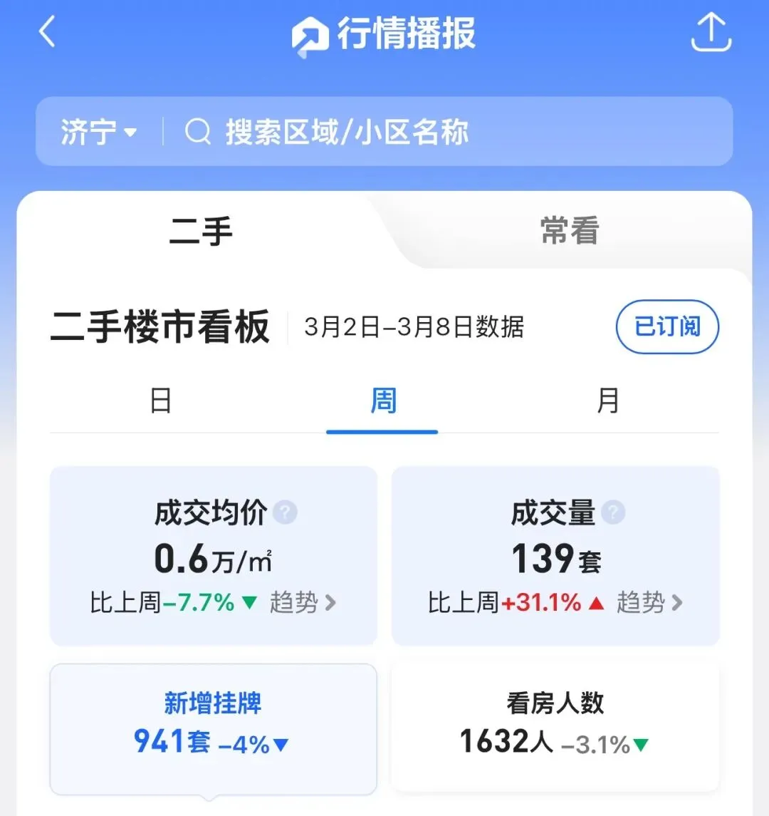 >济宁二手房每周成交数据行情播报|26年3.2-3.8