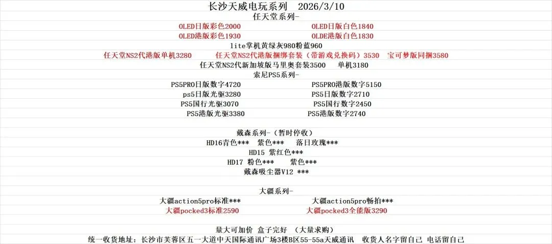 苹果安卓国产手机戴森任天堂长沙回收地址:湖南省长沙市芙蓉区五一大道中天国际通讯广场3楼b区55天威通讯