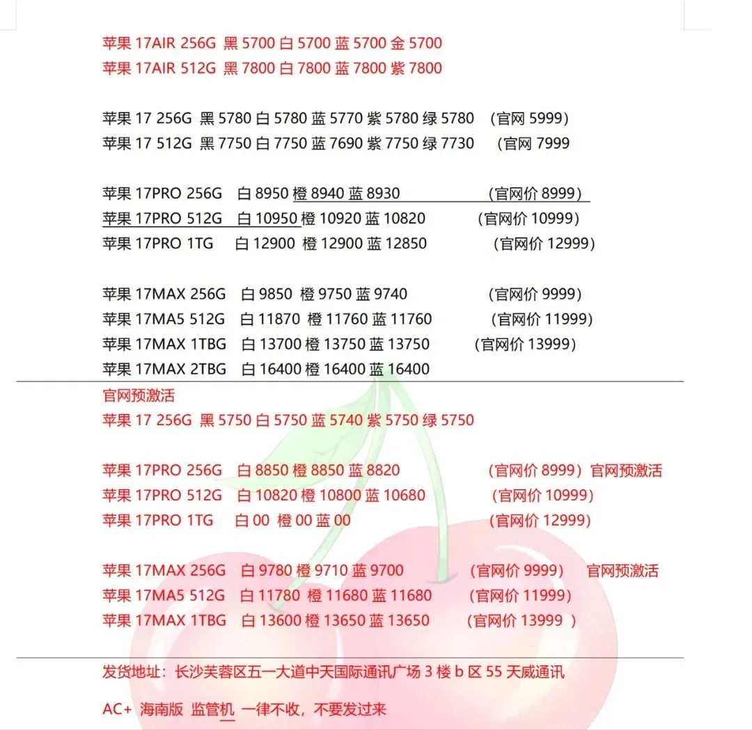 小米17PROmax 16+1TB黑白6050绿紫6100