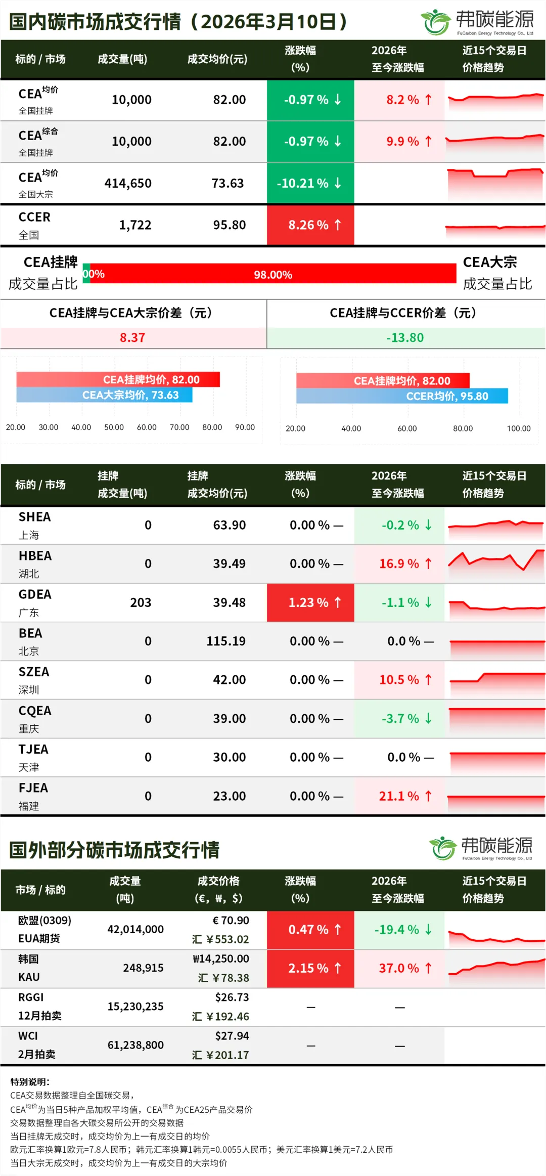 >碳市行情26.3.10 | CEA挂牌成交1万吨,成交均价下跌...
