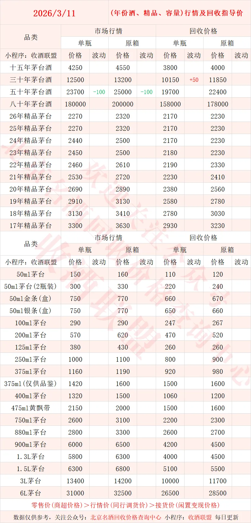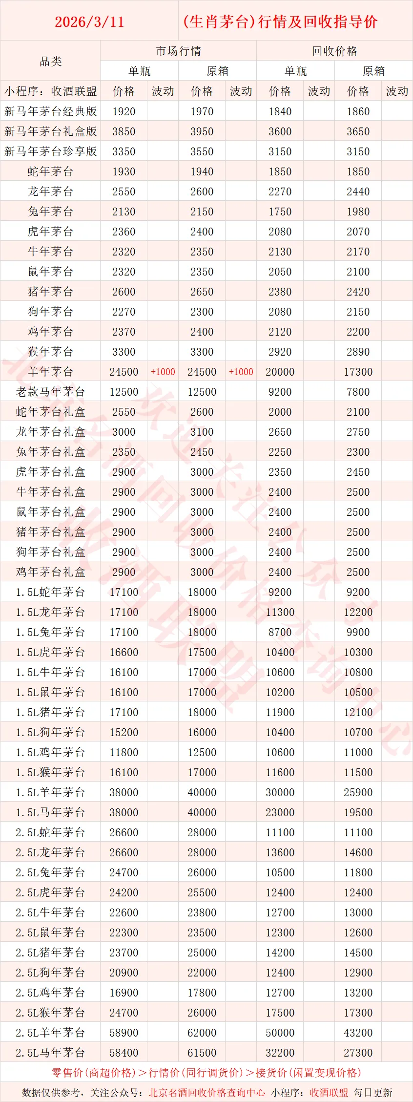 由于平台修改了推送规则,如果您不想错过每天的“一线名酒回收行情”,记得读完点一下“赞“和“推荐”,这样每次新文章推送才会第一时间出现在你的订阅列表里,谢谢各位老铁!