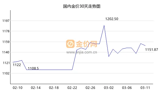 今日国内金价上涨,现价1154.56 元/克,上涨0.75%,今日开盘价1148.00,最高价1158.97,最低价1144.00。