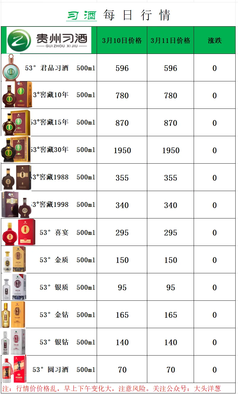 3月11日更新,茅台行情及一线回收参考价格汇总