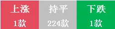 今天上涨有1款,下跌1款,与昨日行情相比总体平稳。