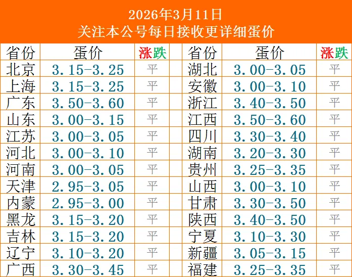 下图为3月11日全国鸡蛋价格表 仅供参考!