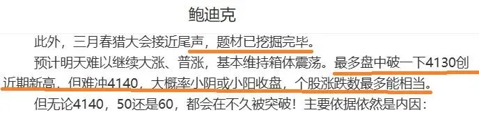 因此估计明天走势也会比较沉寂,向上依然难破4140,向下可能再砸4100附近。但周五会恢复上涨,确保本周收阳,下周还能继续涨!老登会集体撑台,科技股则继续轮流唱戏!