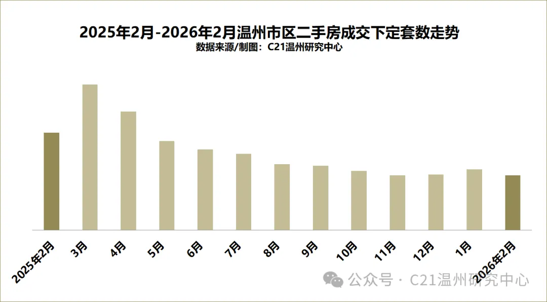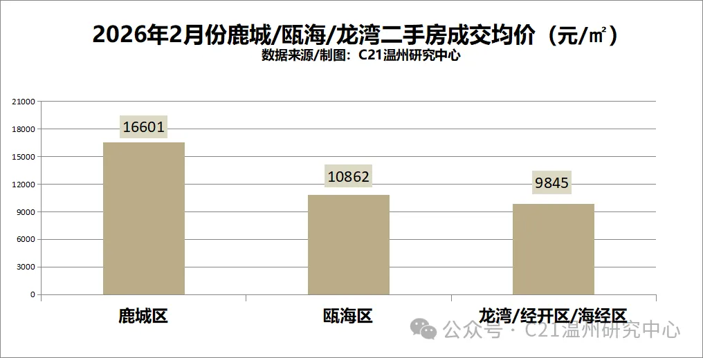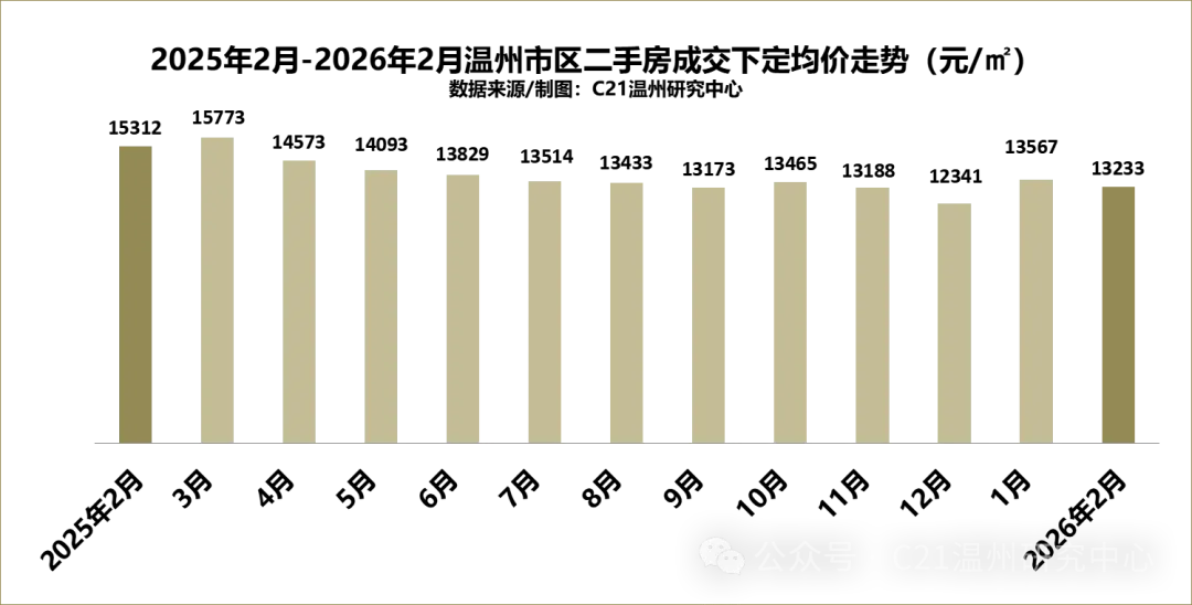 2026年2月,温州市区二手房整体成交均价为13233元/㎡,环比下降2.46%。