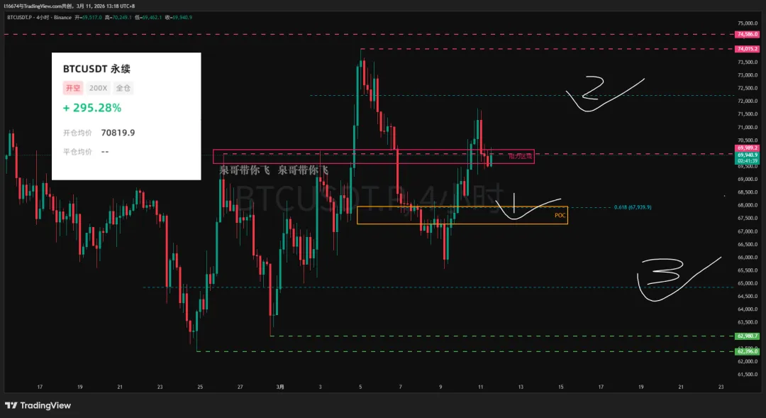 BTC昨天提到做空首要关注70811附近位置,而ETH主要关注2080-90附近位置,BTC昨晚比较强势突破了70811,但是没有到我止损,而ETH则是非常完美的到达了我的开单位置,最高到了2087的价位。有看到的朋友,也恭喜大家盈利。