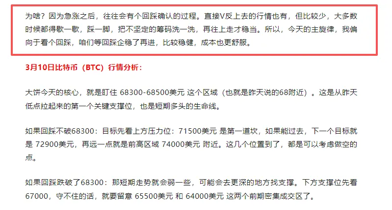 不过还好,咱们的策略没乱,昨天中午就说了,大饼回踩不破68就等715附近做空,以太是21附近空。以太这波没给机会,但大饼的空单已经进去了,目前浮盈状态,接下来就是移动止损慢慢推,把利润锁住,别让到手的肉飞了。