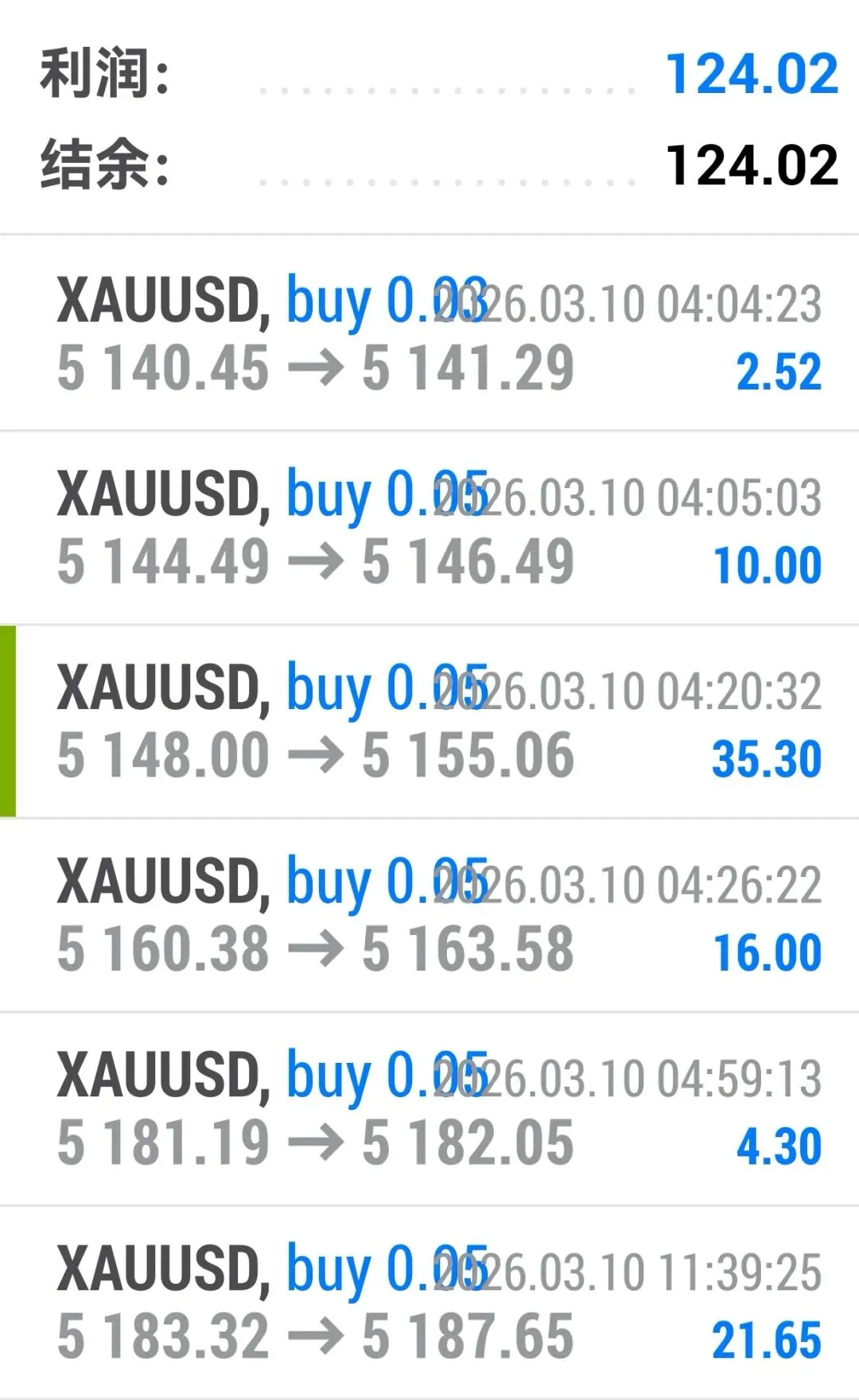 理财账户A正收益