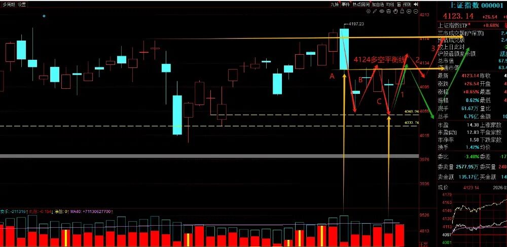资金风格上,机构票持续走高,业绩确定性与赛道龙头成为资金首选,抱团效应显著;短线投机情绪被压制,高位连板标的承压,市场从短线炒作转向趋势持股。市场又回到了量化轮涨的节奏,最热的板块 , 不再是一拥而上的顶一字,而是先砸为敬,分歧后再反包,这样的走势,让很多短线交易者,极度的不适应。一要么停下来,不参与这样的行情。二要么改变自己的交易策略,从指数结构看 : 上证 日线2浪回调, 30分钟级别进入A浪下跌(15分钟1浪反弹)。(以上指数走势仅个人观点,不构成投资建议和买卖依据,亦不作未来收益保证,据此操作风险自担)当下策略:15分钟1浪反弹, 指数企稳,在4106附近低吸,跟踪强势股低吸机会。- 观察情绪标( 宁波jg、亚盛jt、 绿发dl、国安gf、华胜tc )的反馈。