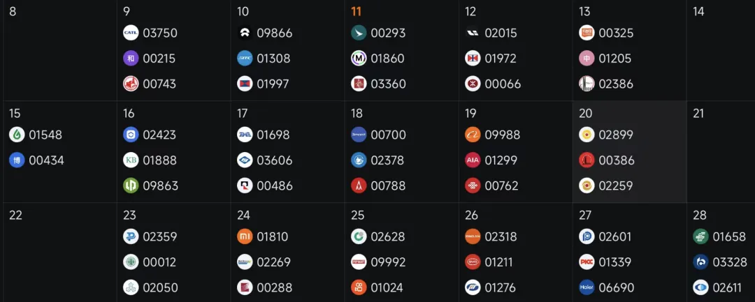3、近期港股财报季,大家密切关注各家财报信息,财报对个股,行业都会有较大影响,下周重磅财报有阿里,腾讯,紫金