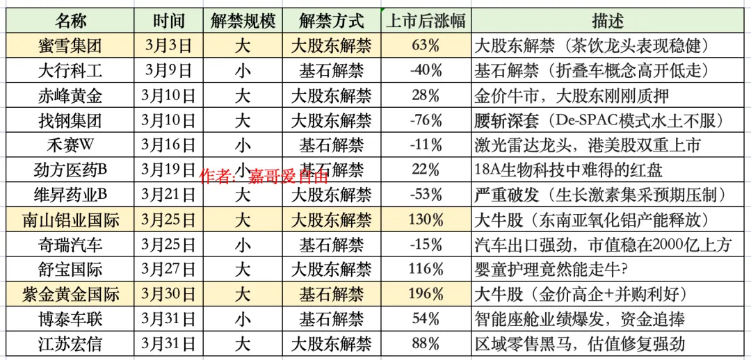10、3月份解禁清单,大家关注+避雷