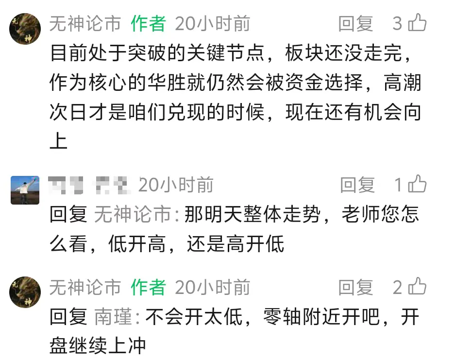 我们看到的都是过去,做出的都是预测,拥有的只是当下。今日依旧晴空万里,艳阳高照,但无神心情却没有这么舒畅。上午算电方向强势延续,协鑫集成水下直接冲上至4个点,华银也多次浮出水面,华胜更是一度上冲至7个点。但人算不如天算,上午强势的科技线,在下午化工油气回流时被抽走了一口精气。当金牛化工上板之后,化工后排疲软无力,资金再次回流到科技,但跌下去的协鑫集成却没能再浮出水面,华胜也回落收在均线之下。当时无神的心都凉凉,害怕辜负同学们的信任,望着窗外的暖阳,却提不起半点兴致。但好在咱们的华银还是相当给力,也不妄无神的坚定看好,尾盘从水下2个点收在了水上3个点,稳稳当当的站在了五日线上。当然无神也不是说咱们的协鑫集成不强,再强势的票,咱也要缓口气,它收在了五日线的上方,咱们也不需要担心太多。华胜也是同理,昨日评论区有同学在问华胜今日大概怎么走,无神也是直言不讳的坚定看多,今日开盘也是符合走势,唯一美中不足的是今日资金被其余板块吸走,没能触板。(来源于公众号评论区,仅供参考与交流,不构成任何投资建议,决策依据或交易引导。据此操作风险自负,股市有风险,投资需谨慎。)