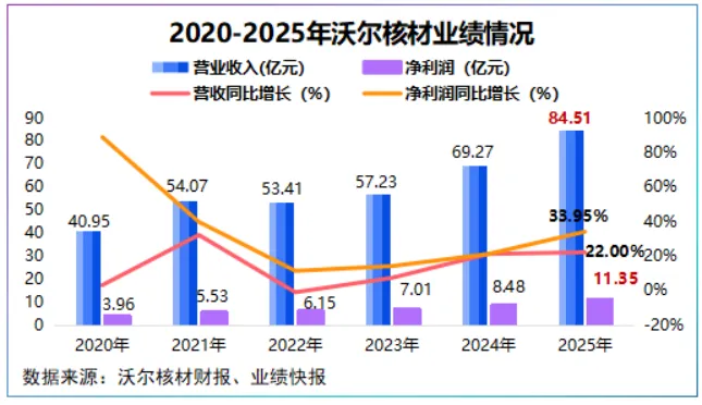就在过去的2月,沃尔核材交出一份满分答卷,公司预计2025年实现营收84.51亿元,同比增长22%,预计实现净利润11.35亿元,同比增长33.95%,创历史新高。