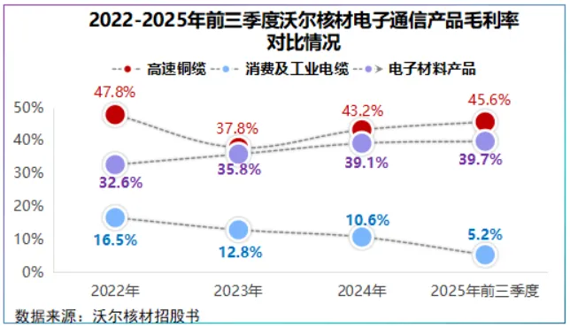 2022-2024年,公司高速铜缆产品平均毛利率约43%2025年前三季度达到45.6%,同比提高了7.2个百分点。