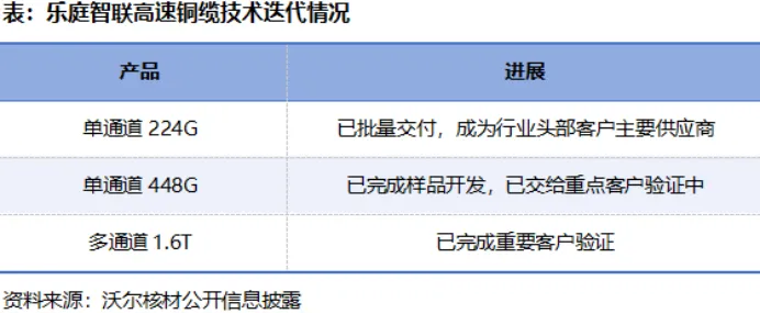 彼时,乐庭智联已经在线缆领域深耕多年,积累了丰富的产品开发经验,叠加沃尔核材的资本注入,乐庭智联一举成了我国较早具备224G通信线量产能力的公司。
