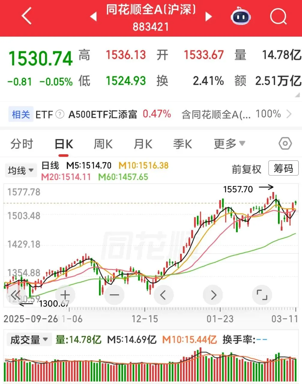 同花顺全A指数放量微跌,分歧明显,面临着方向选择。发现好基:易方达国证新能源电池ETF联结C(021034)。该基金价格突破了近半年的震荡区间,选择了向上发展。具有一定的关注价值。后期可逢回调进场。难受得超想割肉时,大胆加仓;
