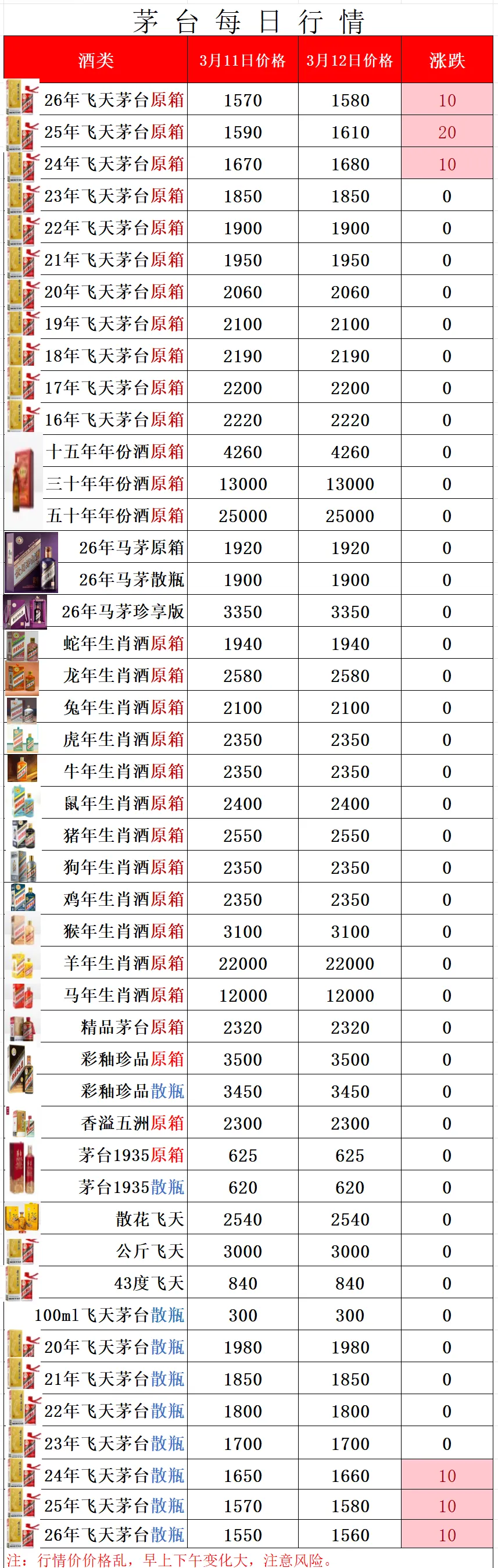 1.以上行情价格为酒商调货价,全国各地酒商调货价略有差异属正常现象!