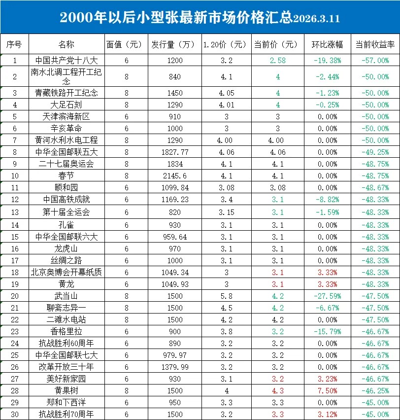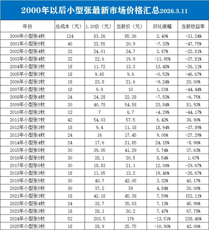 一、各年份小型张的最新市场情况