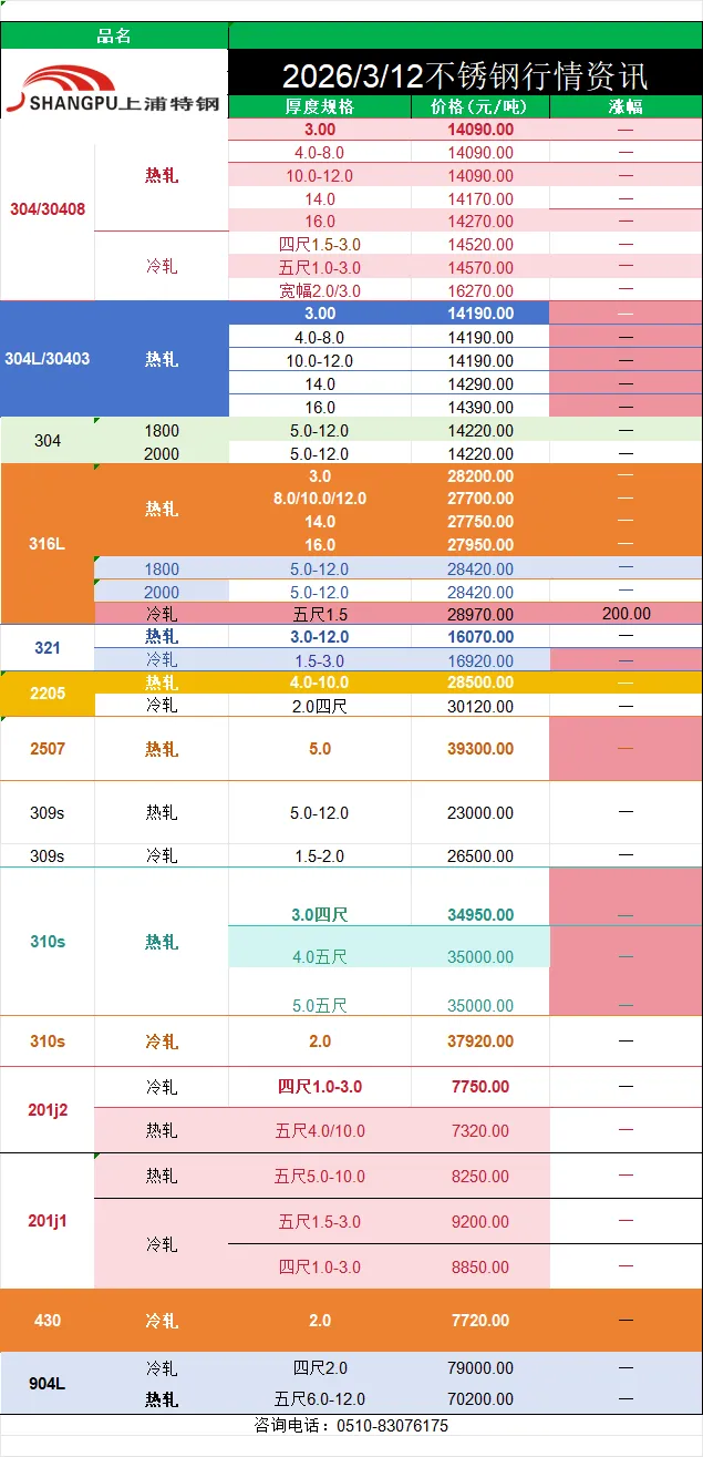 >2026/3/12不锈钢行情资讯