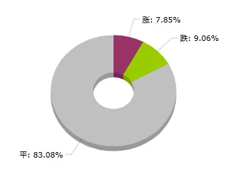 环比下降的商品共有30种,跌幅在5%以上的商品共12种,占该板块被监测商品数的3.6%;跌幅前3的产品分别为苯酐(-21.53%)、纯苯(-18.96%)、甲苯(-17.00%)。