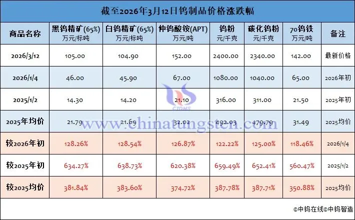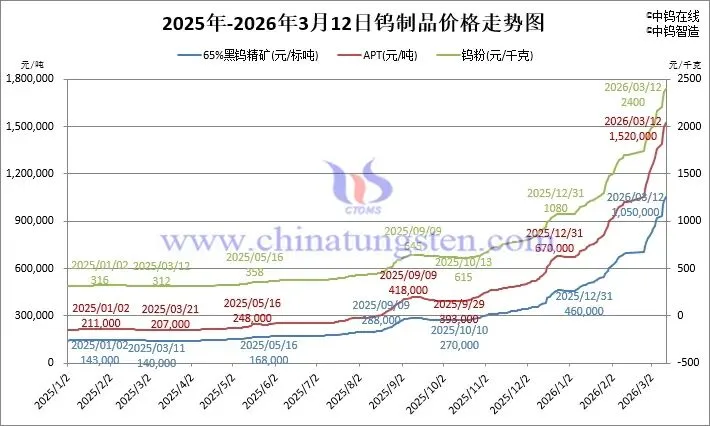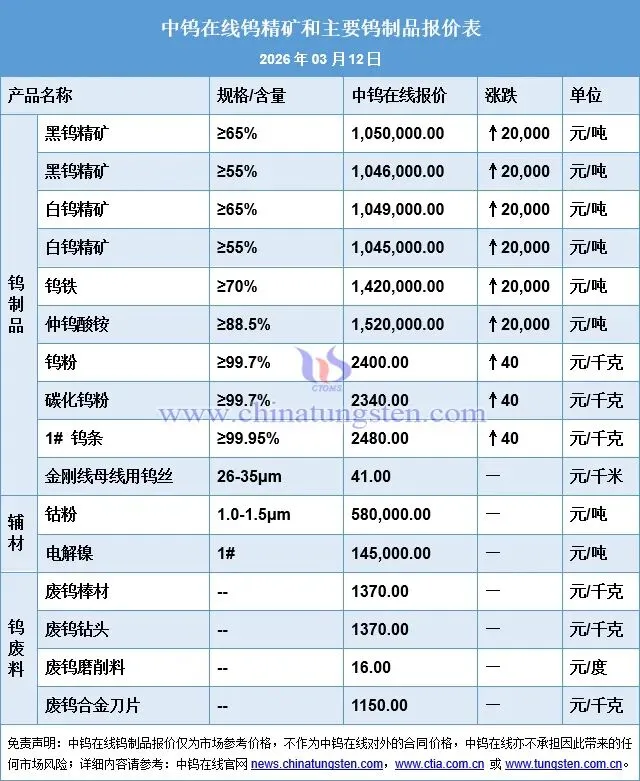2026年3月12日钨价格一览