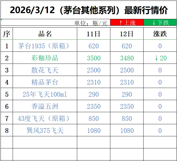 3月12日茅台名酒行情价,飞天直逼1499!