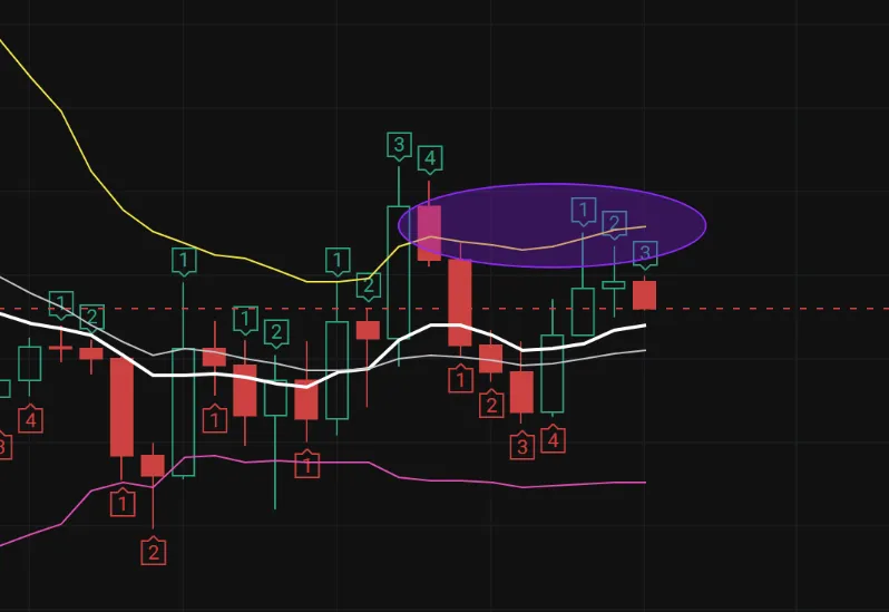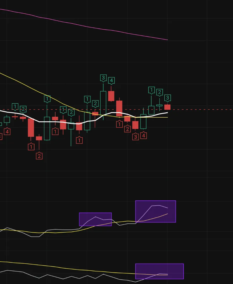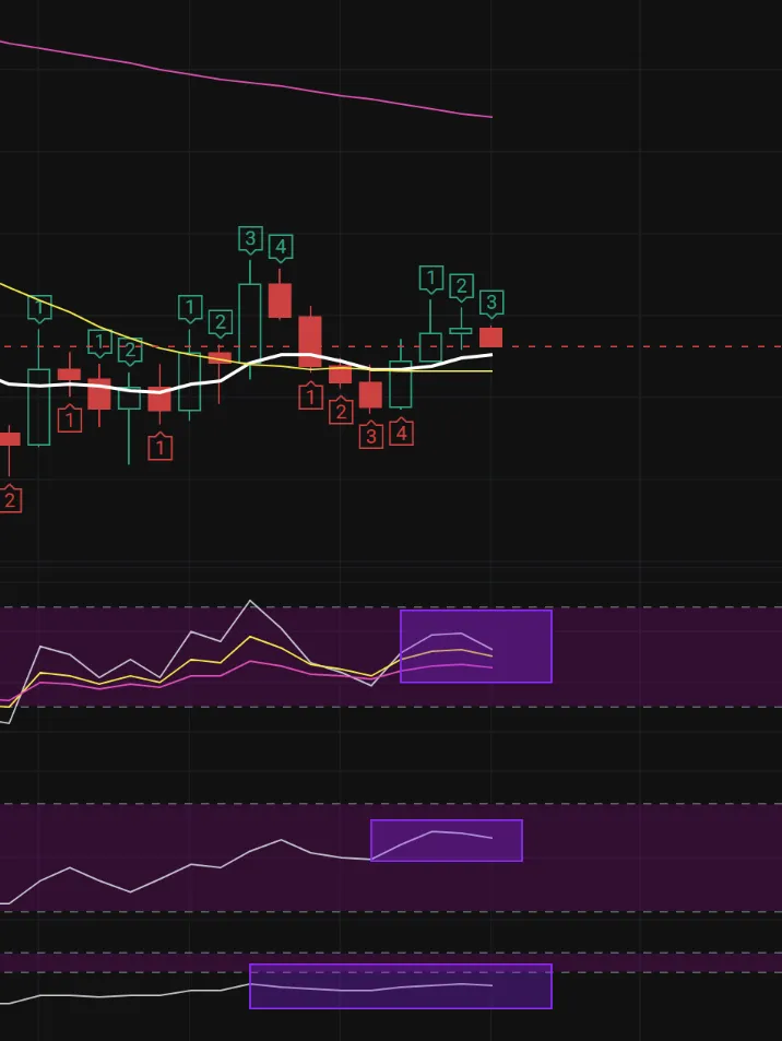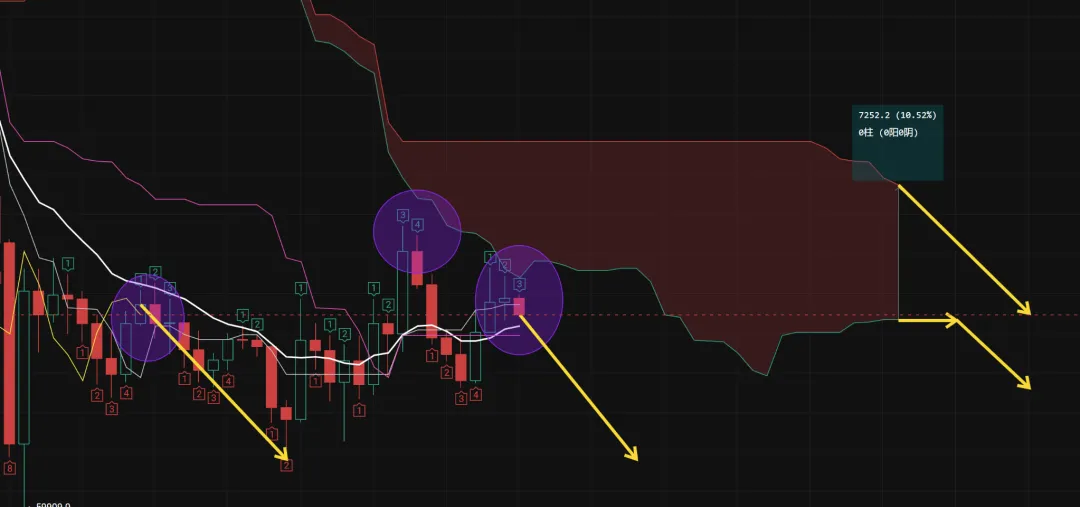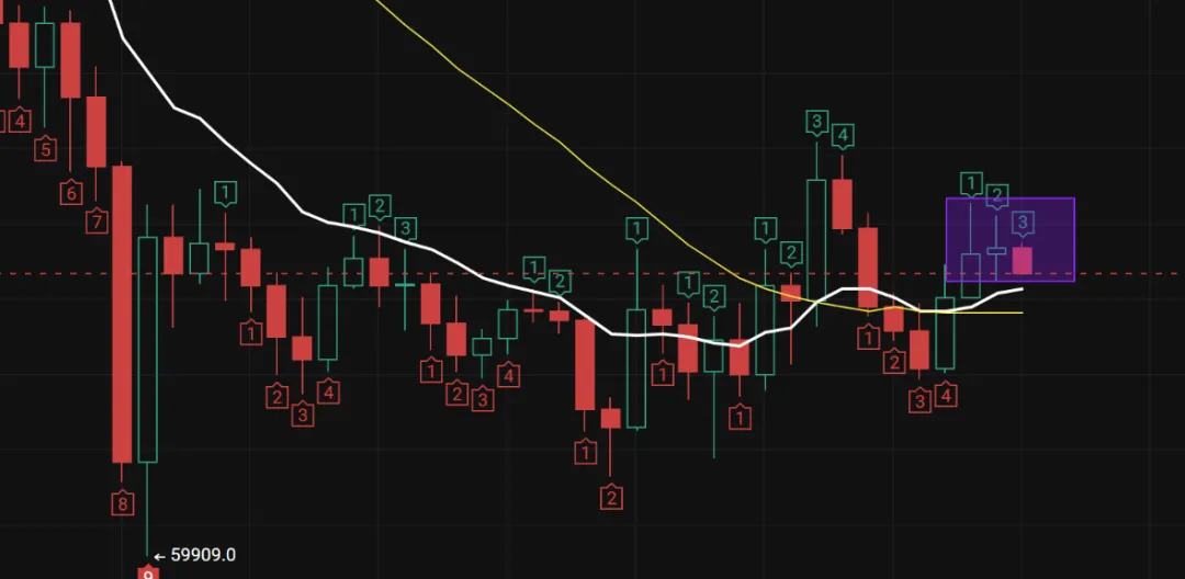 综上:日线的走势内,当前需要确定币价能否再次上攻,所以今日若收不出阳线则上攻失败,币价将会继续的回落,只要回落了,大概率下跌趋势依旧;