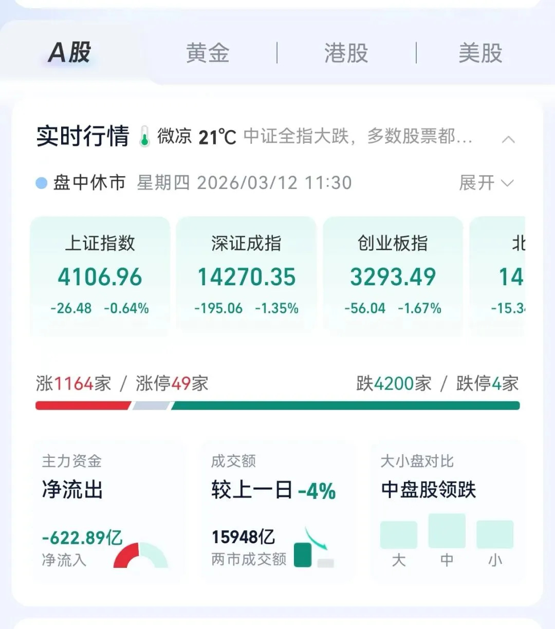 中午看了一眼盘面,差点以为手机坏了。