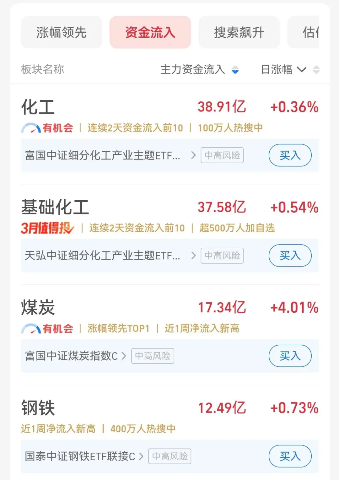 翻了一下板块,除了煤炭,钢铁和化工今天也还行。特别是化工,有朋友前几天就在念叨“先涨有色,再涨铝,最后轮到化工”,今天还真应验了。