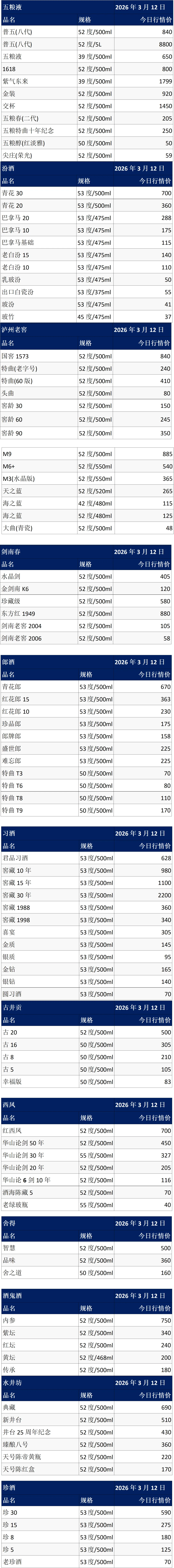 【茅粉报价】3月12日各大名酒批发行情参考价.......