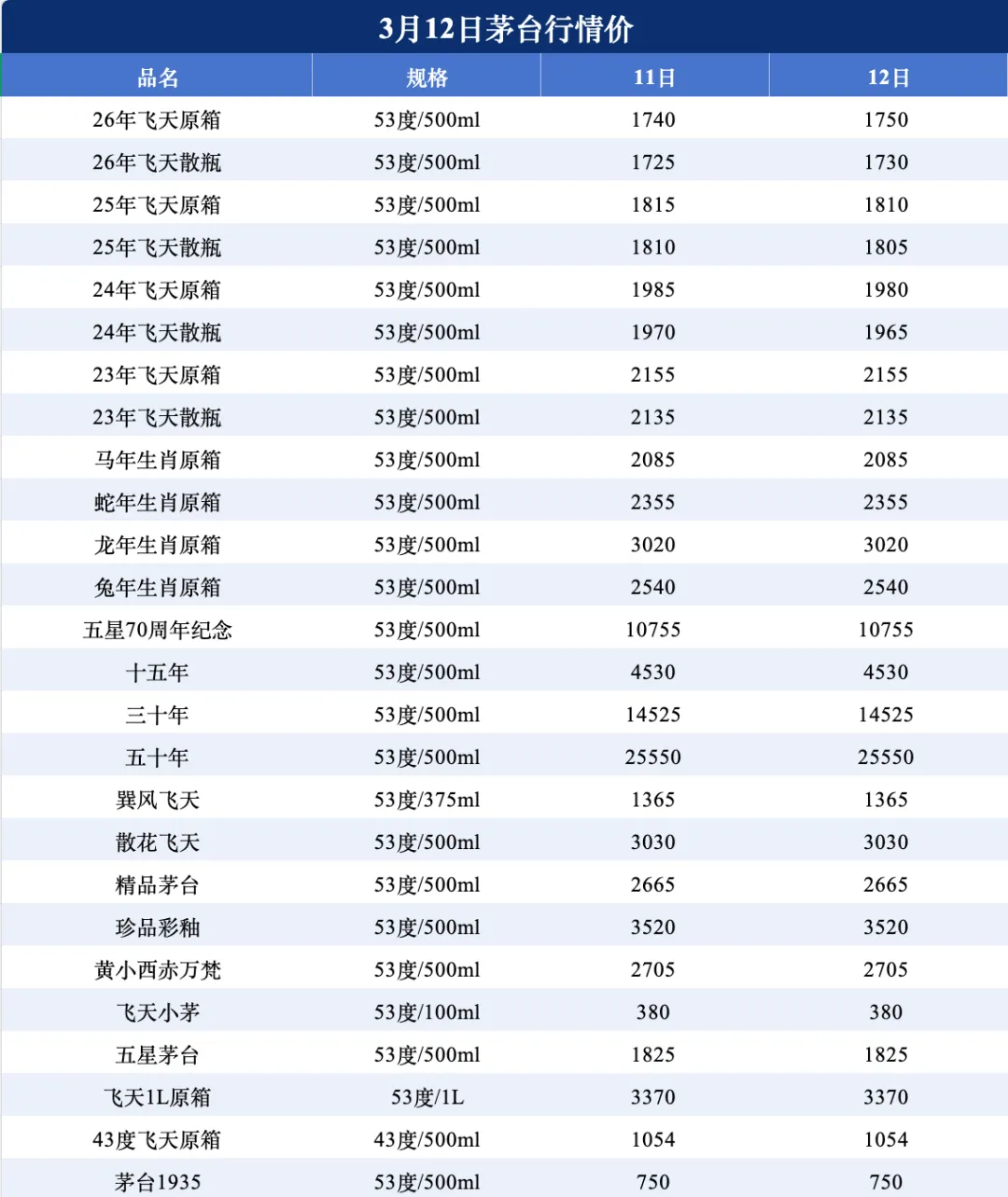 >实时茅台酒行情(3月12日)