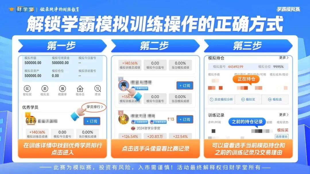 当然,如果想学习更多同学的操作思路,还可以进入他们的比赛详情,查看高手的持仓与逻辑,从中揣摩他们的思路、节奏与策略。这样一来,你不只是旁观者,而是真正走进高手的世界,在比拼中逐渐形成属于自己的交易认知!