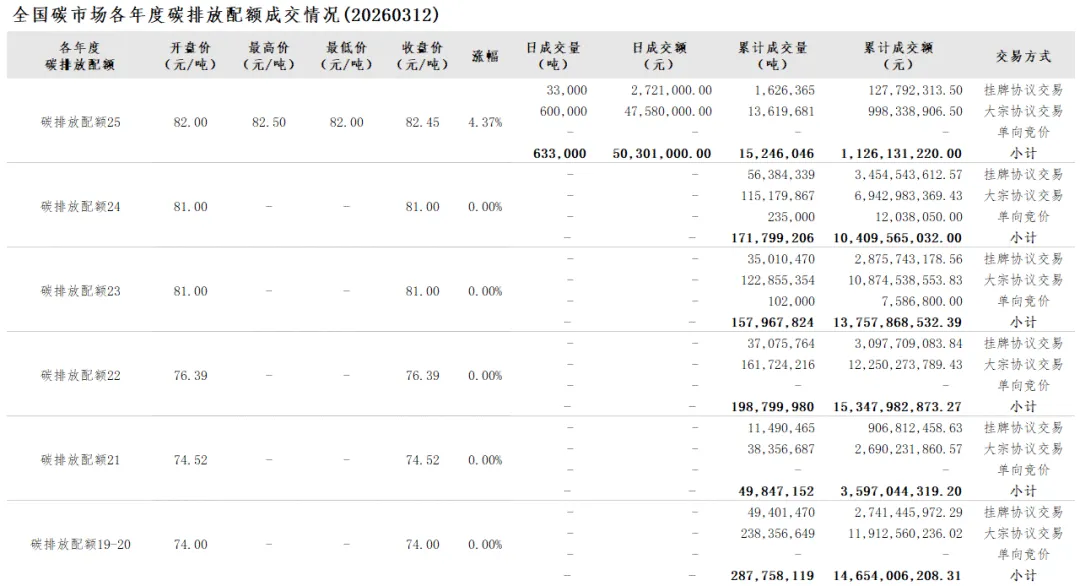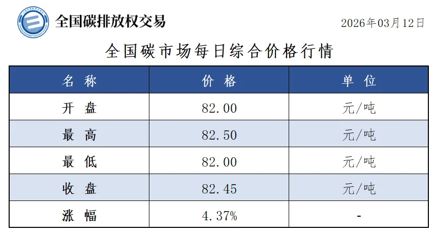 当前位置:首页>行情>【碳市行情】2026年3月12日全国碳市场成交数据