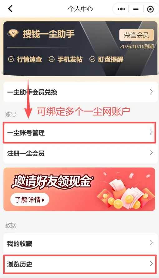 4.多账户绑定:一个手机高效管理多个一尘网账户。