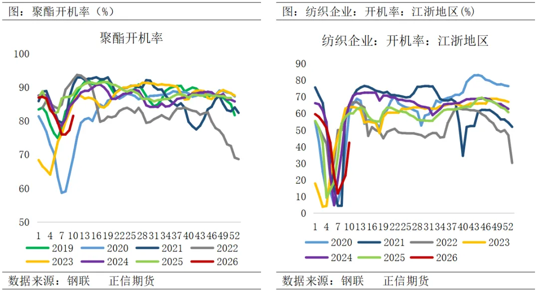 需求端,春节后聚酯及织造负荷稳步回升,原料价格的连续上涨激发了下游投机性补货需求,加速了库存去化,目前聚酯各环节库存压力可控。但仍需警惕高成本的传导阻力,若原料价格长期维持高位,将严重挤压下游利润空间,进而诱发减产等负反馈机制,制约需求的进一步释放。