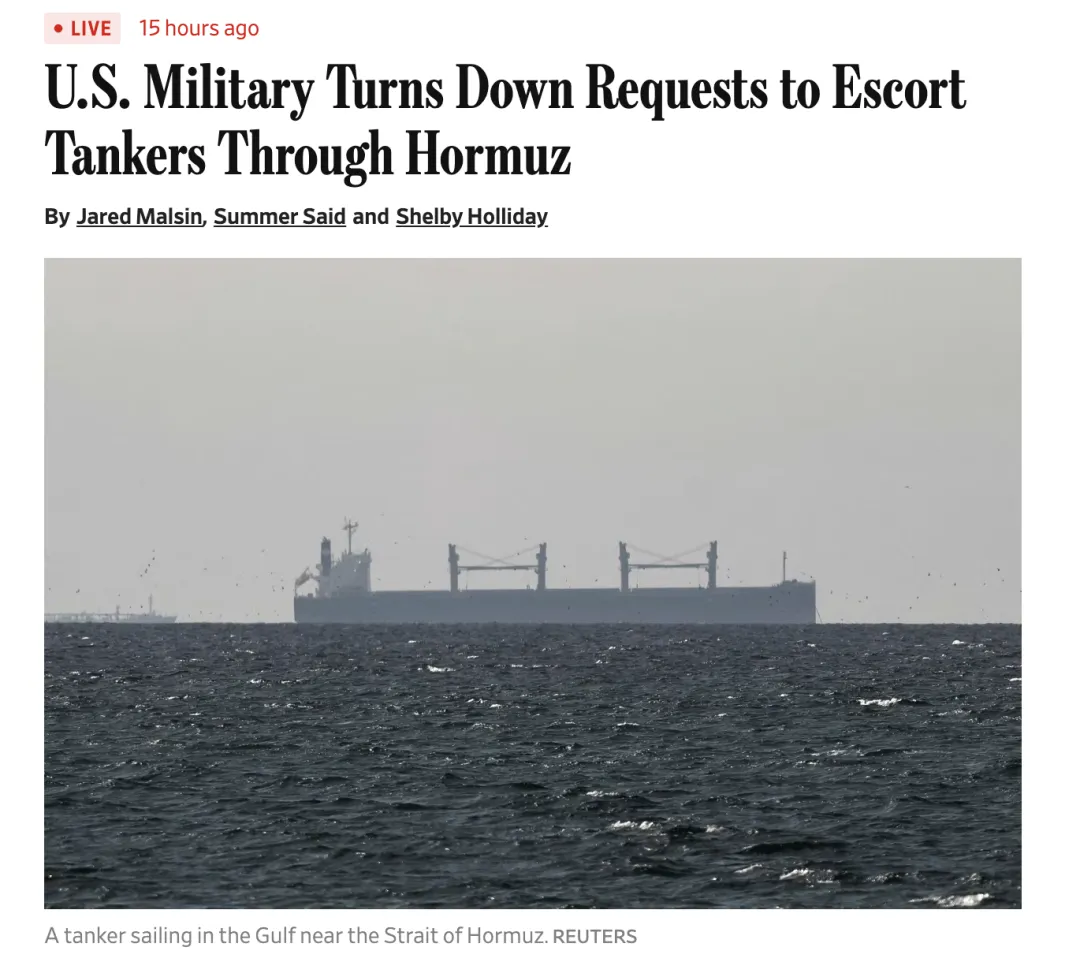 第四,美军拒绝护航请求。 尽管特朗普声称要护航,但美国海军明确告诉航运业:目前无法提供护航,因为风险太高。官员直言,如果船只强行通过,霍尔木兹海峡可能变成“杀戮区”。这意味着,航运恢复遥遥无期。