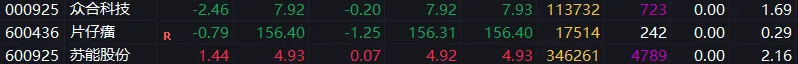 长线票:众合科技回调,稍安勿躁,拿好不动。片仔癀持续探底,耐心布局。长线标的新增关注苏能股份,4.9附近布局。