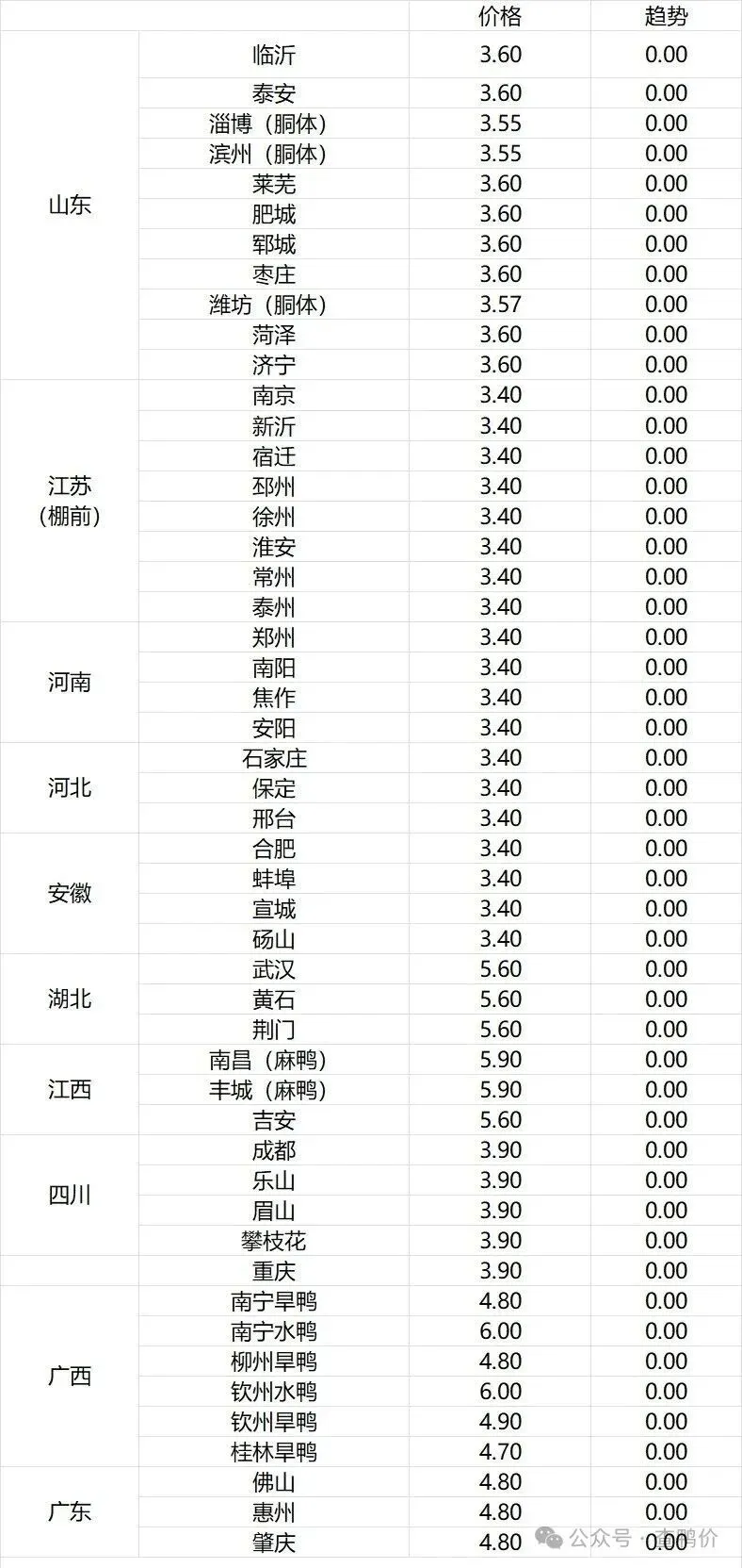 微评:鸭苗报价上涨。(注:南方只报当天价格)养殖端担心后期成本高企,交投逐步走快,拉动市场情绪好转。根据产品、养殖成本及鸭苗现状分析,预计近期鸭苗价格呈震荡上行趋势。种蛋报价涨5分。温馨提示:该价格为主流厂家报价,实际销售价格以成交价格为准,价格仅供参考。