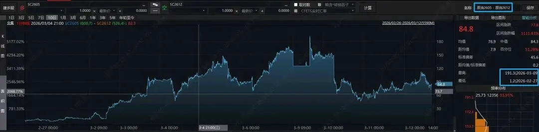 4、近月用2605合约来做(内外盘都可以),考虑这个合约还有1个月以上的交易时间,中间战局大概率会发生反复,跨期价差的波动率非常值得交易。