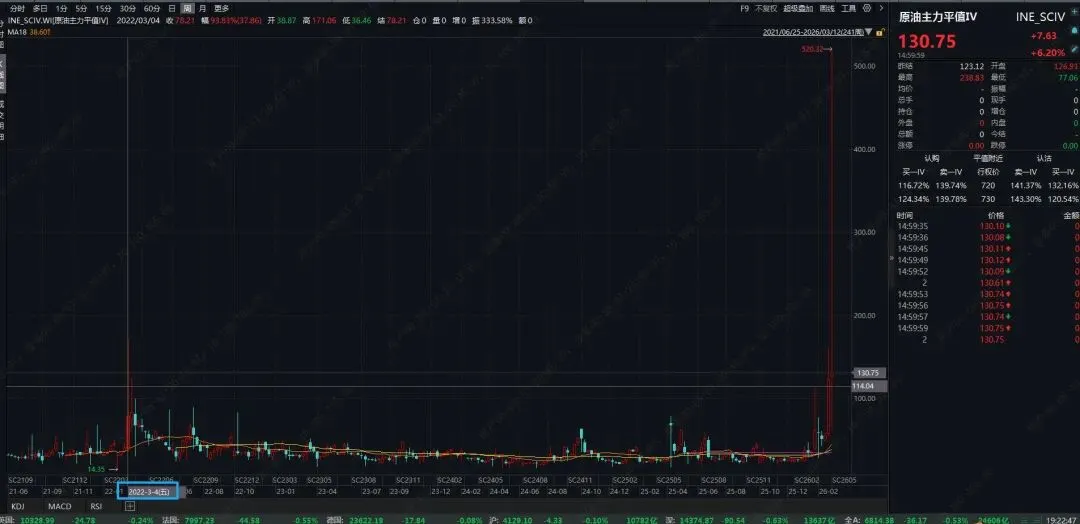 1、首先原油波动率极大(见下图,俄乌冲突期间的原油波动率在今年3月9日的波动率面前都是弟弟。),这种仓位必须开得小,开仓步长拉大,确保保证金能应付各种极端情形,最好是不放杠杆(没有杠杆,就不会没有爆仓风险)。