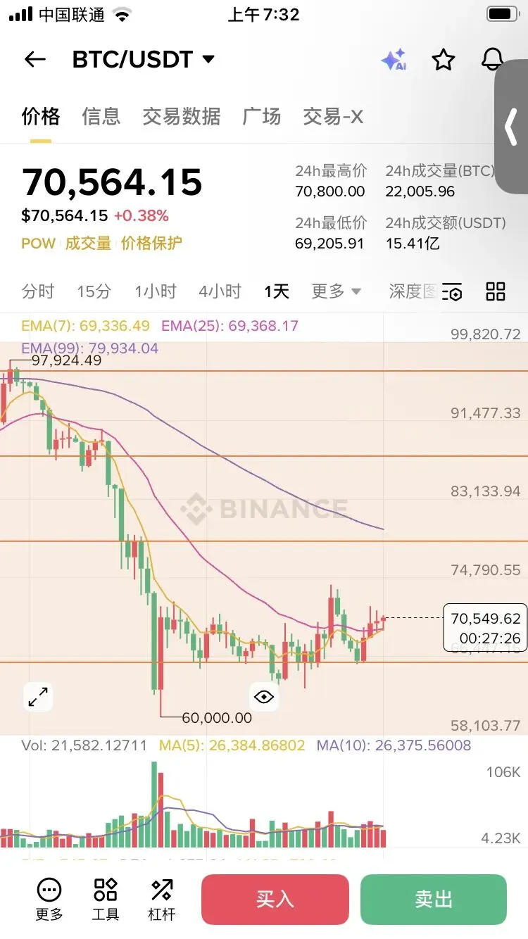 比特币行情目前虽然一直在反弹的行情中,但是走的很纠结,只要有一点场外消息出来都会跌一下,不过目前小级别的反弹没有改变,目前在短线交易上可以围绕70000~69500这个区间展开做多,这个区间做多可以上看75000附近,短线可以看73000这里能不能破了前面这个高点,如果能破了这个高点就可以期待75000以上