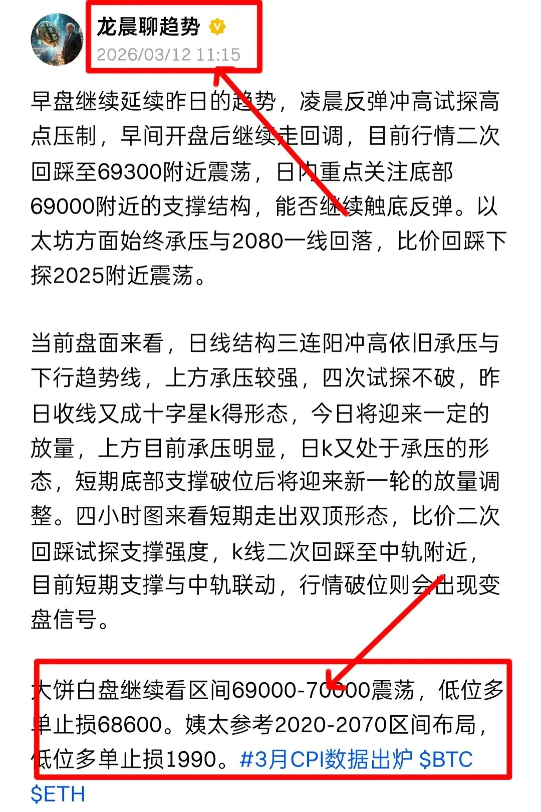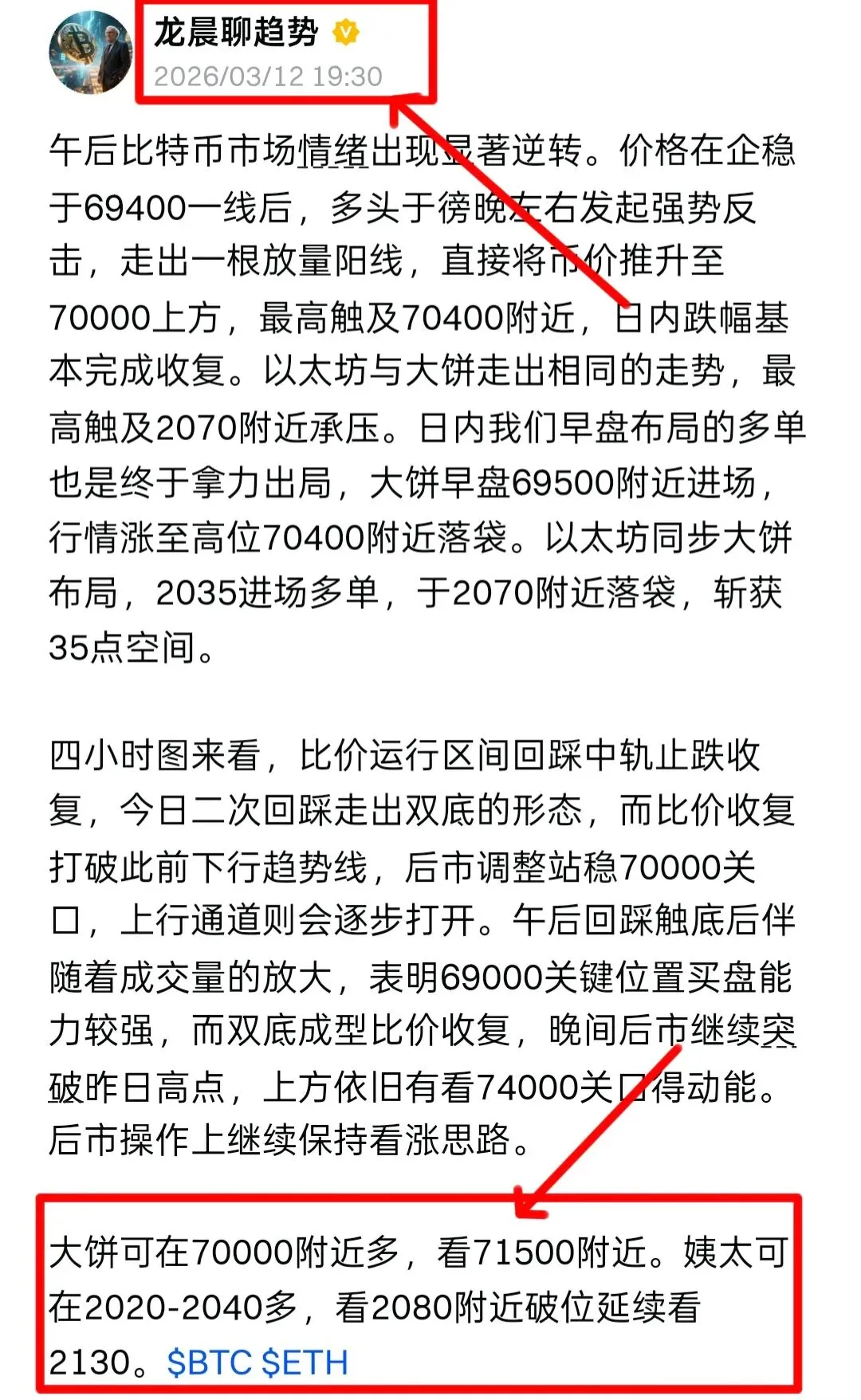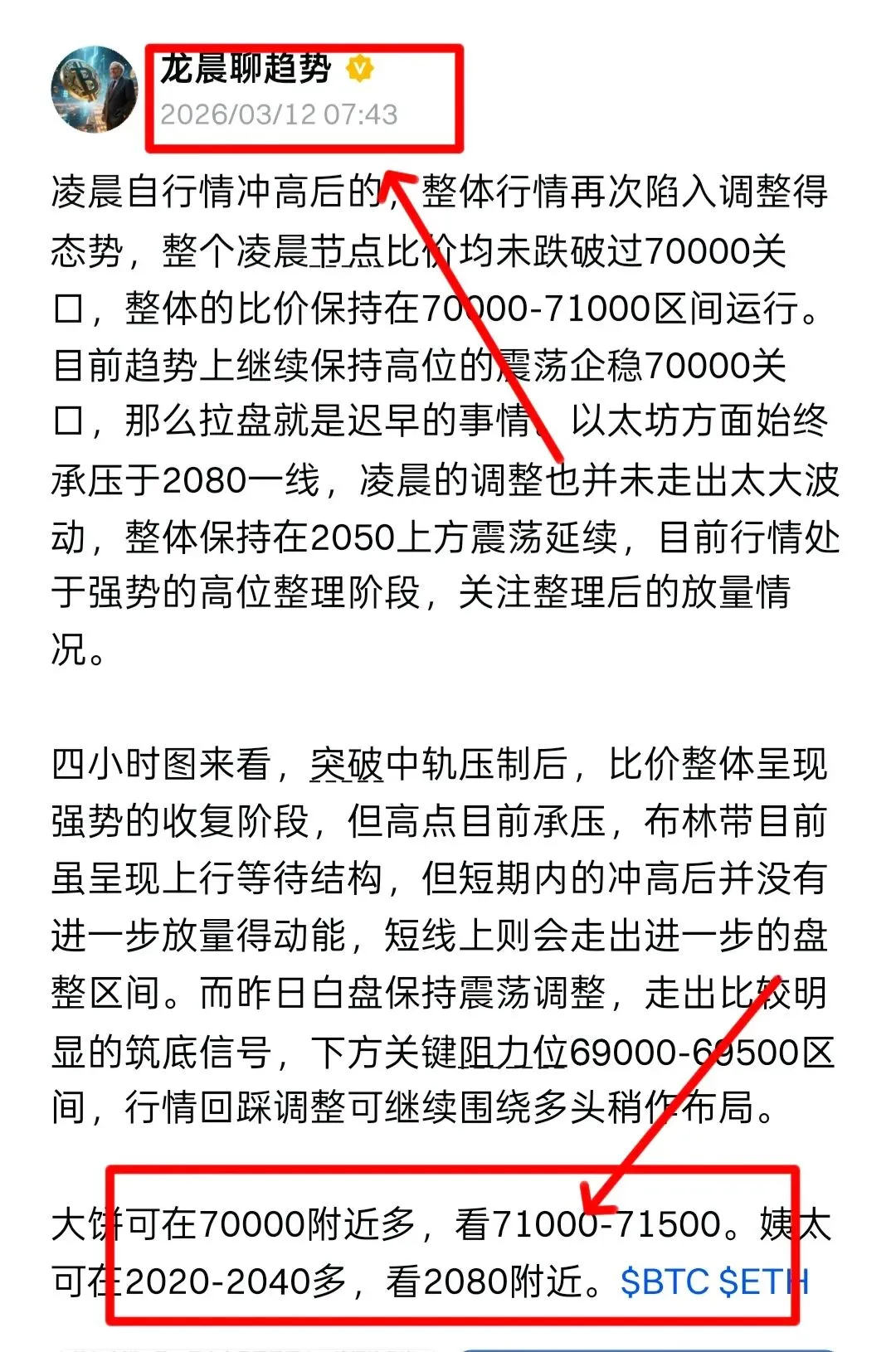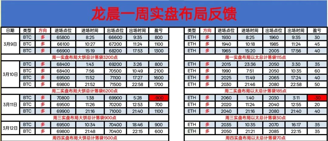 还是简单复盘一下日内行情,大饼早盘收盘后,比价保持回调试探底部支撑的形态,日内白盘保持震荡区间,午间最低回踩至日内低点69150一线,午后行情随着走出震荡上行,于晚间迎来放量得冲高,比价上探打破日内70000关口得压制,比价晚间最高收复至70700附近承压,目前比价保持在70000关口附近震荡调整。以太坊方面于大饼走势一直,晚间插针收复至2090,但依旧围绕站稳前期压制2080一线。日内我们也是保持低多得思路,大饼日内斩获1500点空间,姨太斩获70点空间,日内白盘布局短线较多,获利相对较少,不做为实盘记录。