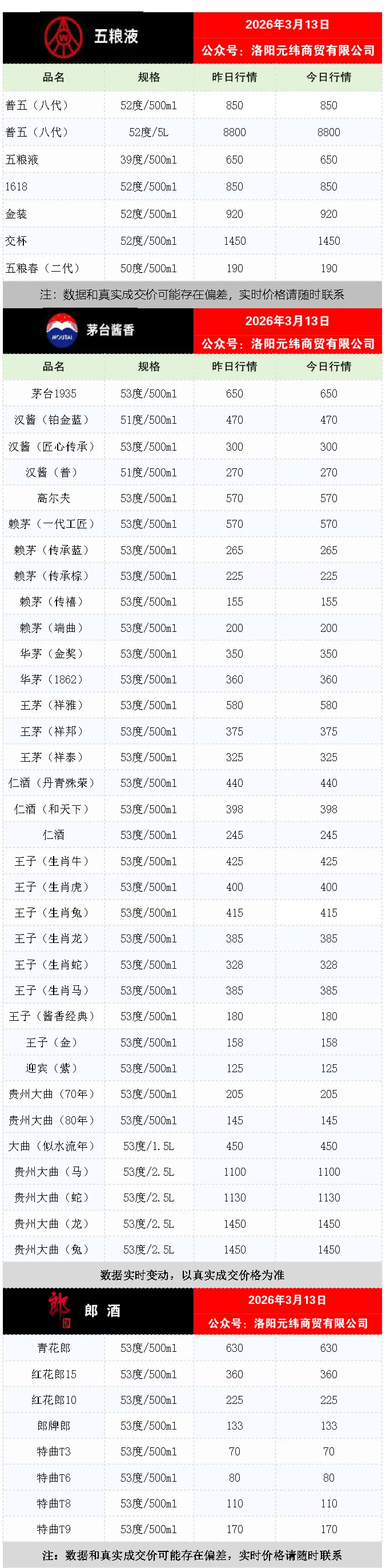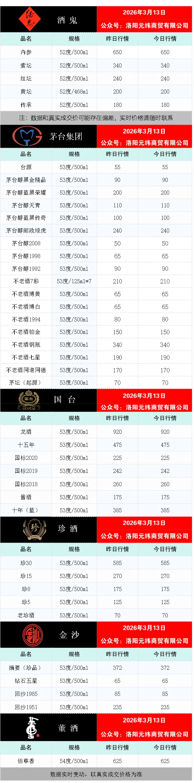 特别声明:行情价格为酒商调货价,仅供交流探讨,全国各地酒商调货价有几十块的差异属正常现象!