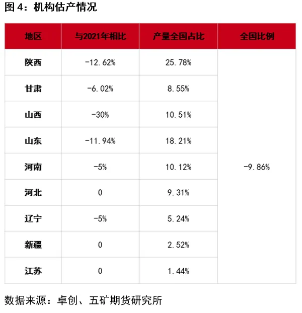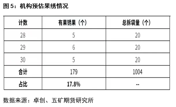 从卓创报告来看,新季减产不及前期预期,且报告显示新季优果率明显高于去年同期水平,但盘面并深跌。其他机构调研数据也陆续出炉,综合来看,卓创估产数据居所有报告中最高水平,其他机构普遍预估产量将同比下滑30%左右,而2021年全国苹果也小幅减产,整体减产幅度较正常年份将高于30%。因各机构预估产量差异较大,资金也偏谨慎,拉涨及杀跌动能均不足。
