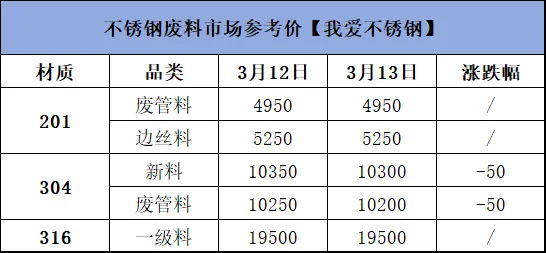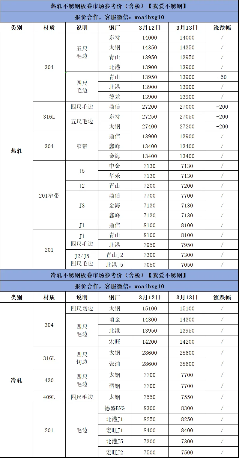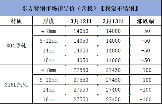 >3月13日不锈钢材料价格行情参考