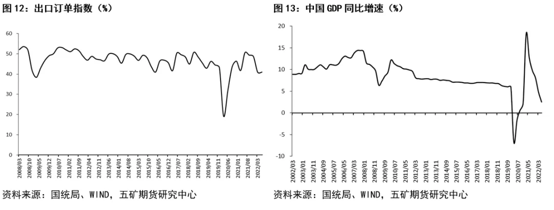 2022年6月份,出口订单指数为41%,2021年9月以来持续处于收缩区间,海外订单减少;中国Q2公布GDP累计增速仅2.5%;