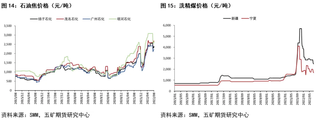 上游煤炭端,由于煤炭供给紧张因素,利润出现大幅增长,当前依旧维持着相对丰厚的利润。其中,煤炭开采及洗选业利润同比增速175.3%,石油焦利润超400元/吨(利润率约17%)。